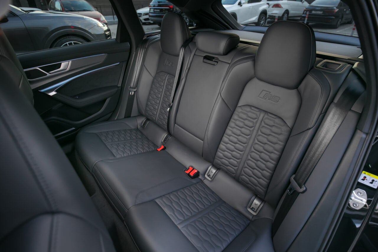 The RS sport seats include ventilation for Dubai summers. With space for 4-5 bags and split-folding rear seats, the RS6 handles airport runs easily. Matrix LED headlights adapt their beam pattern automatically, while soft-close doors add refinement to daily use.