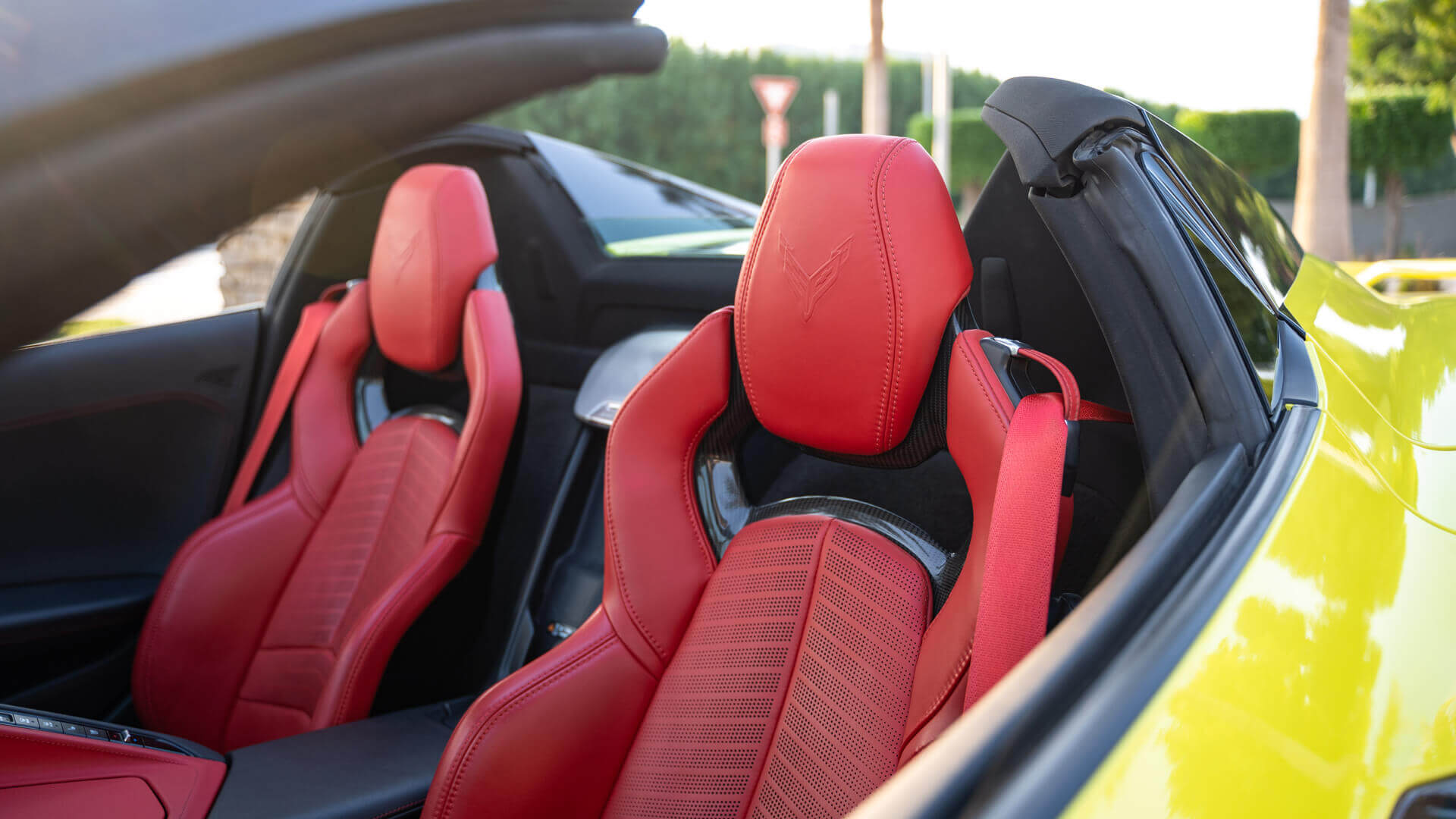 The cockpit wraps around you with leather seats and digital displays angled toward the driver. The mid-engine layout moves weight to the rear axle for perfect balance through corners. The front trunk and rear cargo area behind the engine accommodate weekend bags, while the removable roof panel lets you enjoy Dubai’s perfect weather.