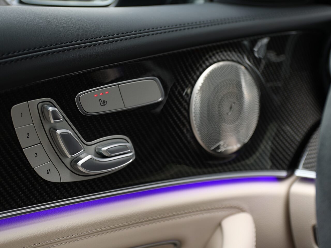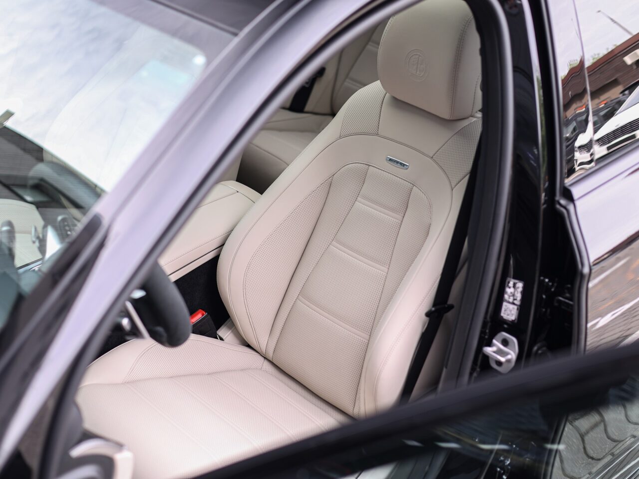 AMG sport seats include heating, cooling, and massage functions. The cabin features extra sound insulation and acoustic glass, but still lets in the right amount of V8 sound. The trunk fits 4-5 bags while maintaining room for passengers.