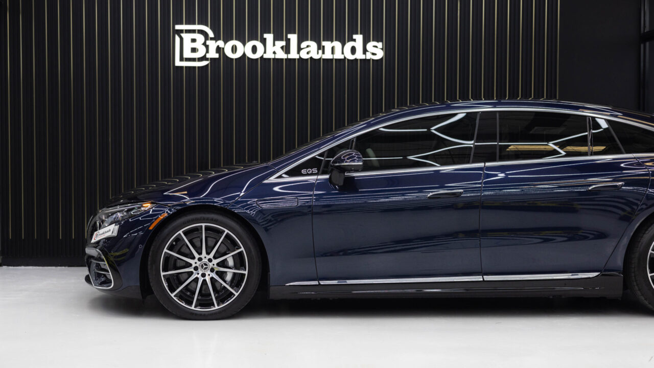 The EQS represents Mercedes’ vision of electric luxury. In dark blue, this flagship EV combines advanced technology with silent performance.