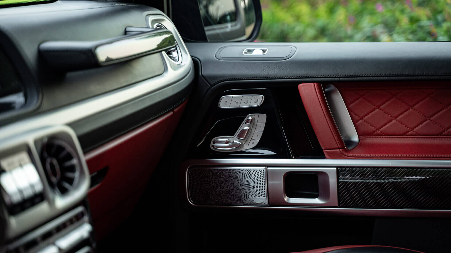 The AMG performance exhaust creates the iconic G63 V8 sound — a deep roar at start-up, thunderous acceleration, and dramatic pops on downshifts. The side-exit pipes under the running boards amplify this signature sound. Sport mode unleashes the full AMG soundtrack that turns heads on every drive, while Comfort mode tames it for relaxed cruising.