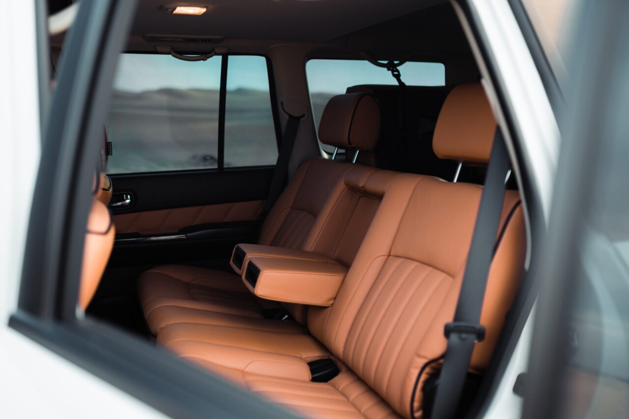 The Super Safari edition includes special tan leather interior with contrast stitching and Super Safari embroidery. The built-in refrigerator keeps drinks cold in Dubai heat. Additional sound insulation and thicker glass create a quieter cabin, while the premium audio system delivers clear sound throughout.